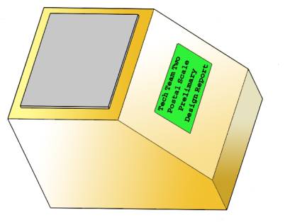 The scale will be an enclosed device, with an aluminum pan to hold the weight of the sample. A thin aluminum bar, 1/4" inch in width and 1/8" in height, will support this pan by a vertical rod. Attached to this beam will be a 120W strain gauge. This strain gauge will be mounted directly under the pans support piece for maximum efficiency. The gauge will be connected within a wheatstone bridge, which will deliver its output to an amplifier. The voltage of the amplifiers output (0 to +5V) would be directed into a 12Bit A/D converter. This data will be sent via digital I/O lines to Parallaxs Stamp II microprocessor. This information will then be will be converted to a weight in grams, and a formula will then calculate the correct postage and display this on the backlit LCD screen. This screen will be mounted angled towards the user for maximum readability. This robust design should have no problems due to its simplicity, yet the power of the embedded system will provide the user with a state-of-the-art full-featured scale. The scale will automatically zero itself during initial power-up, and enter low-power consumption sleep mode. The scale leaves sleep mode when an object is placed on the pan and the backlight on the LCD turns on while the display shows the correct output. The scale turns off after approximately 35 seconds of inactivity.